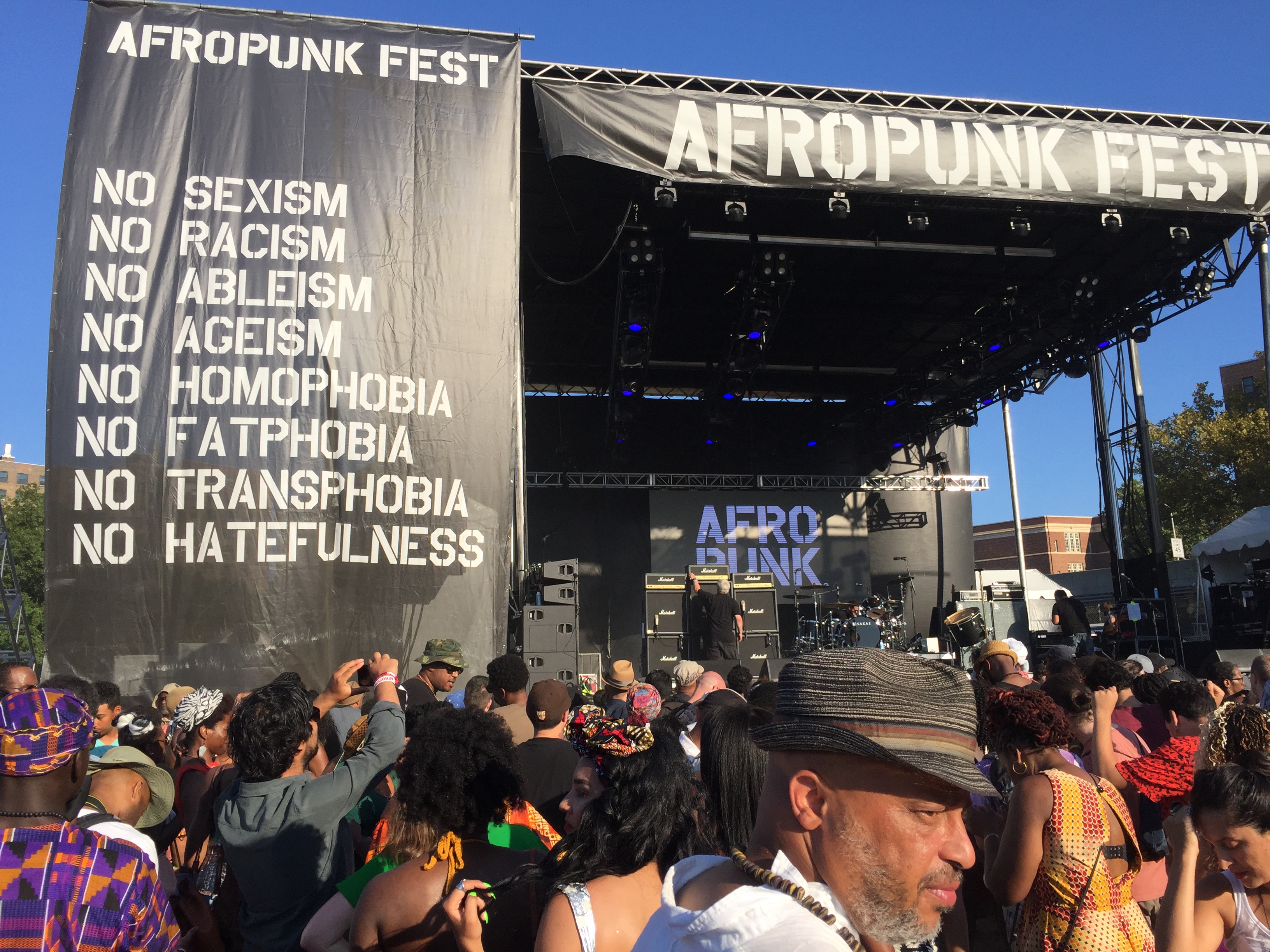 AFROPUNK’s unapologetic dialogue against issues of racism, sexism, homophobia, transphobia and hatefulness through ableism, ageism and fatphobia created a magically safe space for people of the Black Diaspora and allies, to gather and be express themselves for a day or two.