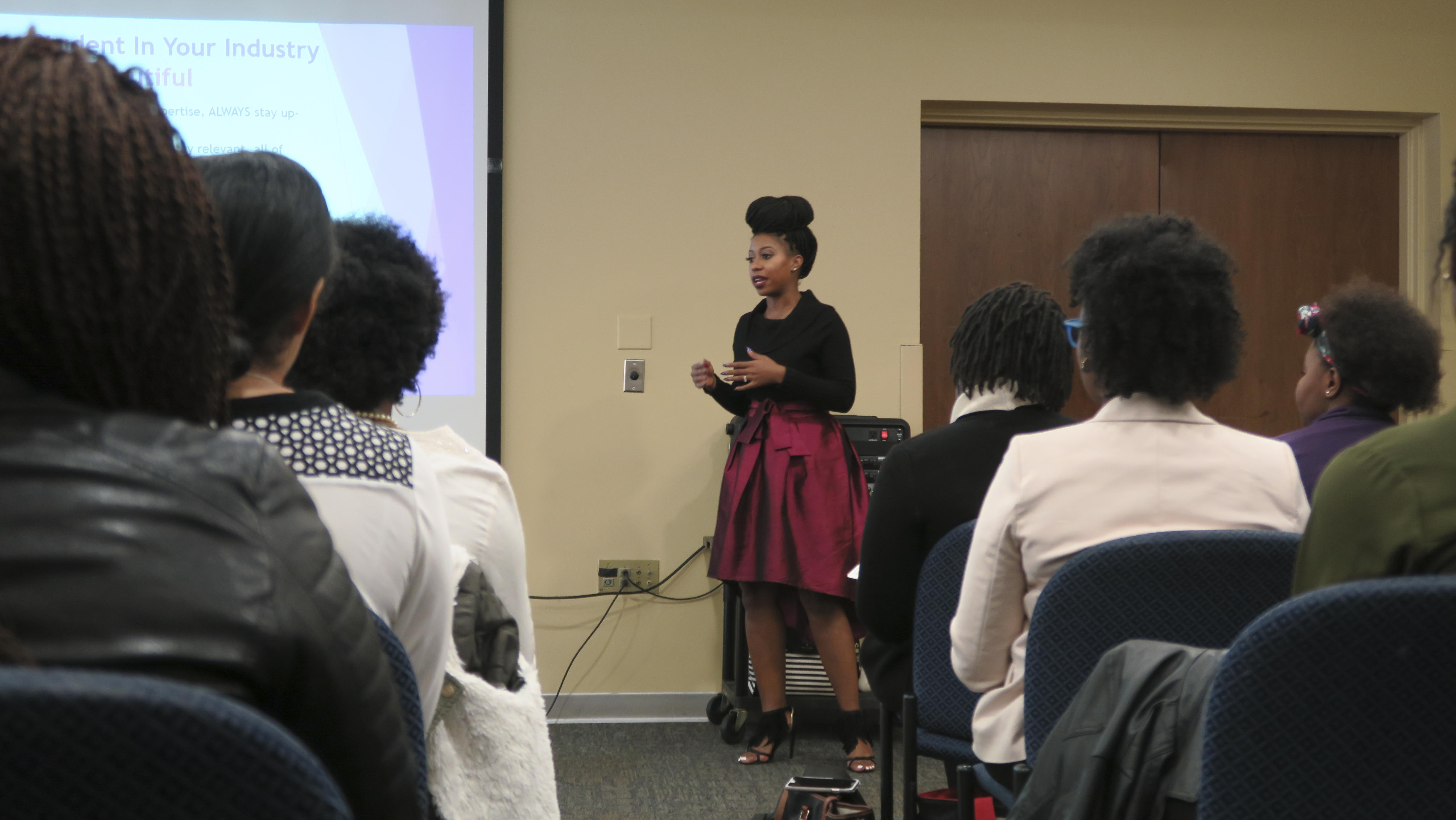 Brittney S. Carter, founder and CEO of B. Carter Solutions, LLC spoke at the professional development workshop. Carter spoke on building a brand, presenting your best self and using social media as a business tool. She connected with listeners by sharing her personal experiences/stories.