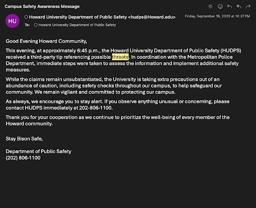 Hampton University, Bethune-Cookman University, Southern University, Virginia State University, Clark Atlanta University and Alabama State University instituted campus lock downs following threats. On Sept. 19, the Howard University Department of Public Safety released an email, informing students and faculty about possible threats.