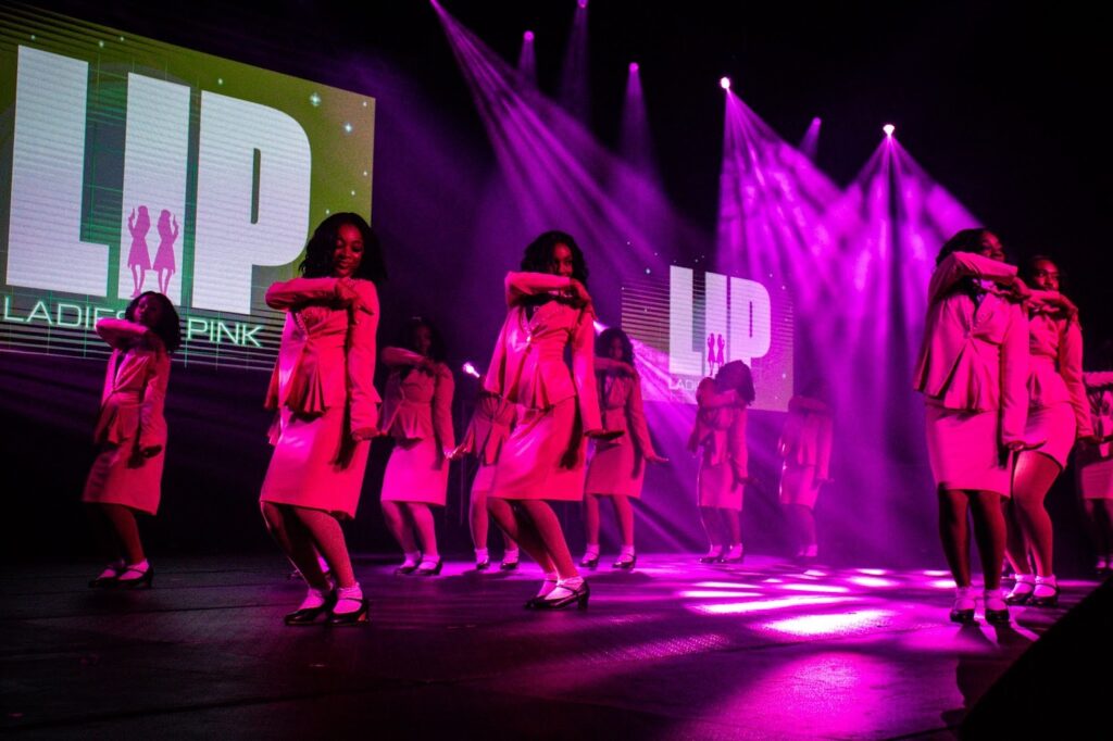As their performance ended, the final sorority of the night took the stage — the two-time champions, Alpha Chapter of Alpha Kappa Alpha Sorority, Inc. Before appearing, a short video introduced their theme, “Ladies in Pink,” inspired by “Men in Black.” The performers then entered to Kanye West’s “Monster,” wearing pink blazer suits with black ties.