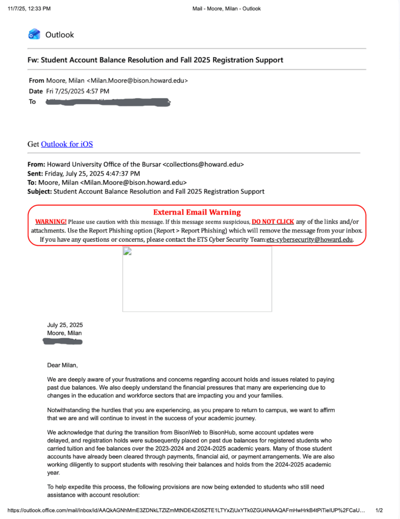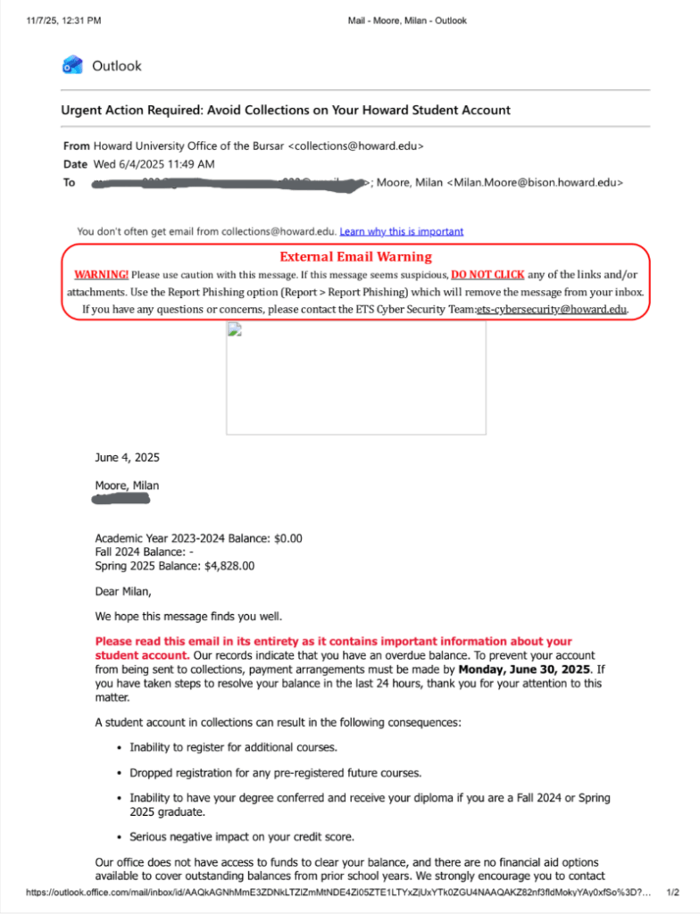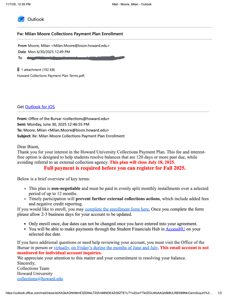 After the deadline, all the students The Hilltop spoke with said they never received a follow-up email about balances actually being sent to collections and after multiple requests for comment, the university did not respond in time for publication.