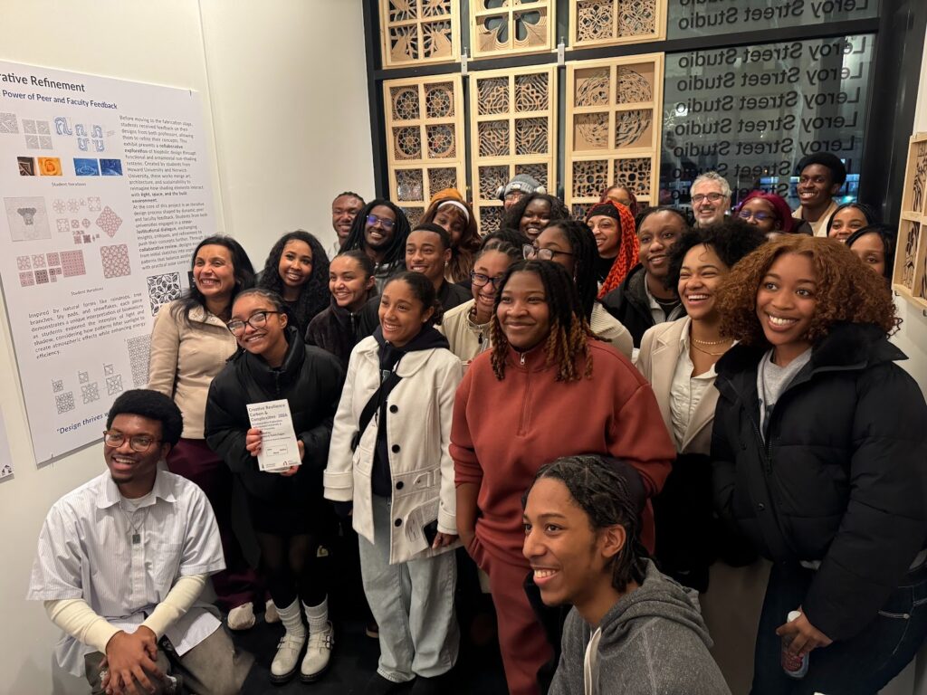 In the heart of New York City’s Chinatown, several meticulously crafted wooden frames hang in the window of Leroy Street Studio, displaying a variety of patterns and shapes. It’s more than an art exhibit — this is the work of Howard University third-year architecture students.