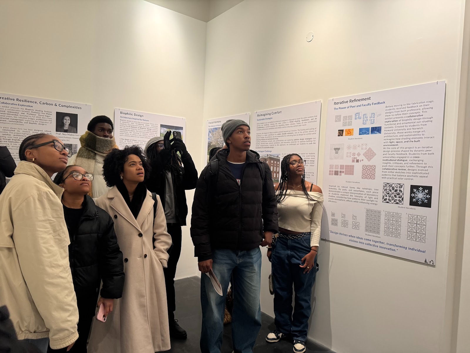 The exhibit was a collaboration between Howard Assistant Professor Nea Maloo and Associate Professor Danny Sagan of Norwich University. After meeting at a conference, they developed a curriculum around biophilia, which integrates nature into architectural design using light, plants and other organic materials.