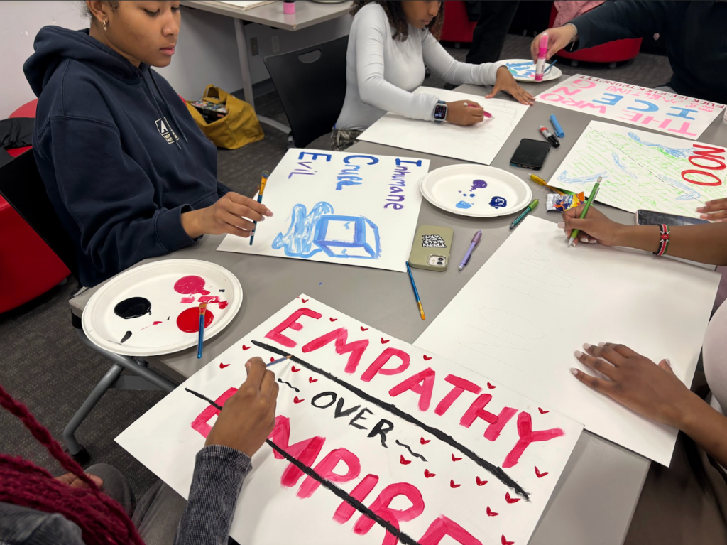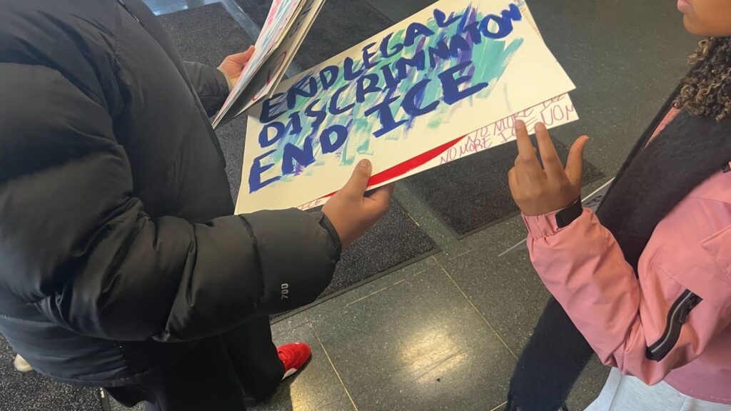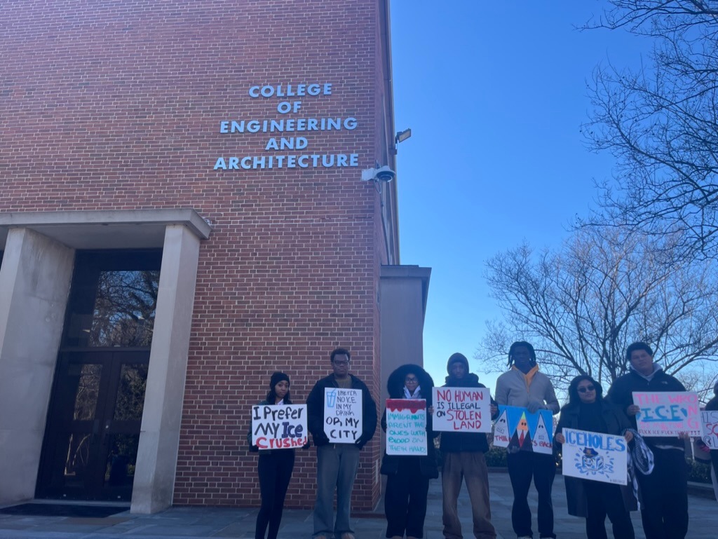 Led by the Howard University chapter of The National Organization of Minority Architecture Students (NOMAS), students of multiple majors stood outside the Mackey building with various anti-ICE signs created by first-year architecture students.
