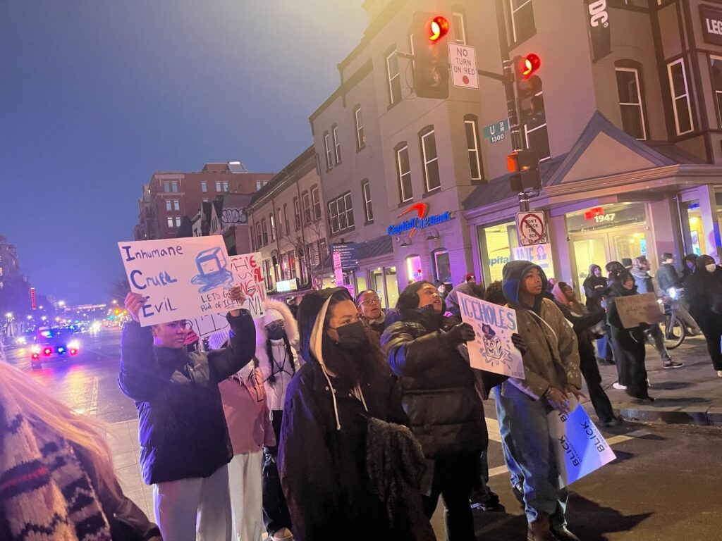 Tilanna Peterson, a freshman criminology and Spanish double major from Guantanamo Bay, Cuba, went to the walkout and later joined the U Street protest. She felt that it was important to stand up against ICE’s actions, which she felt were morally reprehensible.