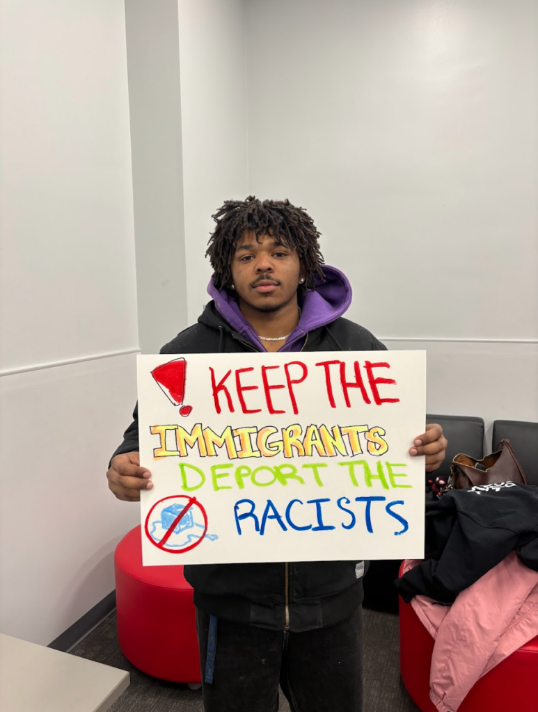 Santino Vaughan, a freshman architecture major and philosophy minor from Baltimore, Maryland, serving as the executive assistant of NOMAS, felt that not enough organizations on campus were making a stand against ICE and the increase in deportations of immigrants and citizens alike.