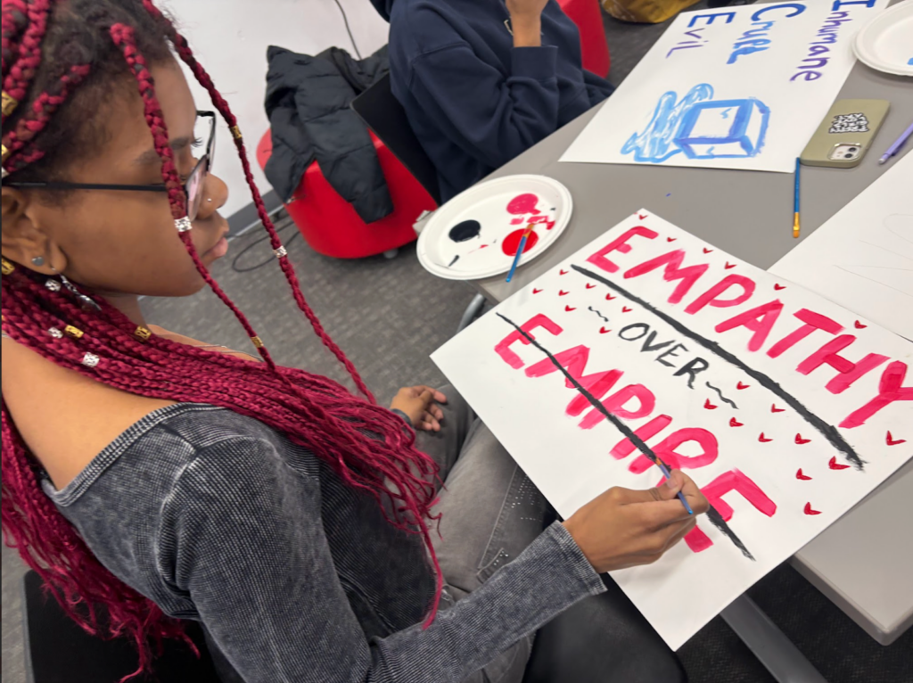 Carly Ato-Davies, a freshman architecture major from Minneapolis, joined the protest in solidarity with her hometown, where 2,000 ICE agents have been deployed, according to PBS.