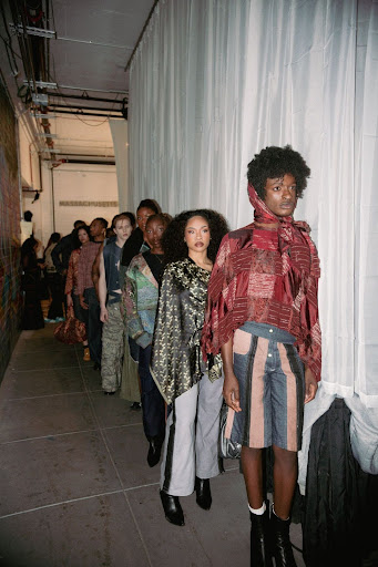 Before a night of mingling, Fox returned to the runway, not to introduce another look but to acknowledge the hands that made the production possible. Thanked designers, interns and attendees who had filled the room.