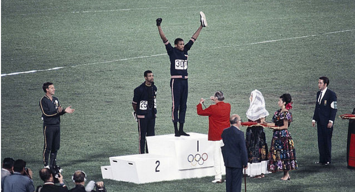 during the award ceremony of the 200 meter race at the Mexican Olympic Games. (Photo courtesy of Angelo Cozzi via Wikimedia Commons)